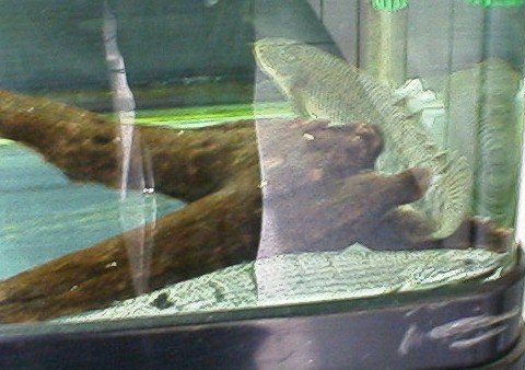 いわゆる古代魚に属する魚です。ドジョウのような情けない魚体に恐竜を思わせる背鰭、これがいいのですなあ。現在この60センチ水槽にはデルヘジィ、パルマス、セネガルスの3種が泳いでいます。同じ小型種のウイークシィもコレクションに加えたかったのですが60センチ水槽では3匹が限界の様ですね。ものの本には臆病で電気を消さないと水槽の上まで上がってこないなどと書かれていますがこいつらは昼間でもすいすい泳いでバクバク餌を食いやがります。おかげでパンパンに太ってしまいました。そんなところまで飼主に似なくていいのに。ちなみにポリプテルスは非常に丈夫で一度知らぬ間にヒーターが切れて水温が10℃くらいまで下がったのですがなんの異常もなく水温を上げてやるとまたすいすい泳ぎ出しました。